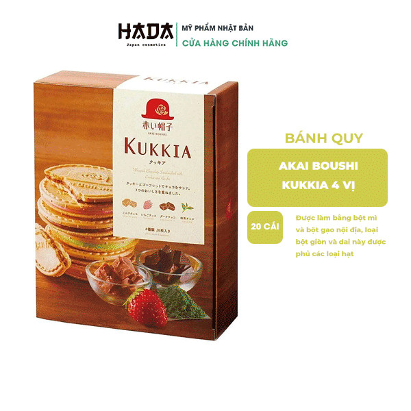 Bánh quy Kukkia nhân kem 4 vị hộp 20 chiếc AKAI BOUSHI có thể ăn trực tiếp như một món ăn nhẹ bổ sung năng lượng hàng ngày. Nếu bạn muốn mang sản phẩm để biếu tặng cũng rất hợp lý vì hộp khá lịch sự, cứng cáp.