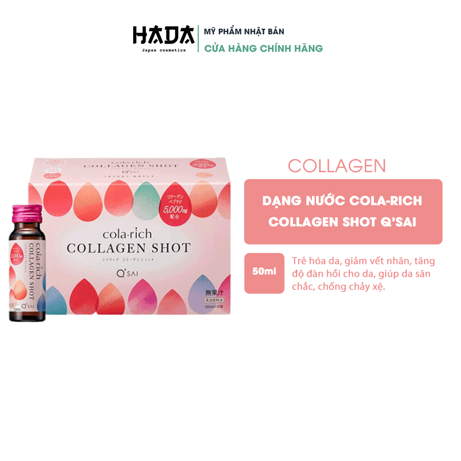 Collagen dạng nước Cola-rich Collagen Shot Q'sai Nhật Bản Hộp 10 lọ 50ML