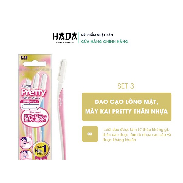Set 3 dao cạo lông mày Pretty KAI.