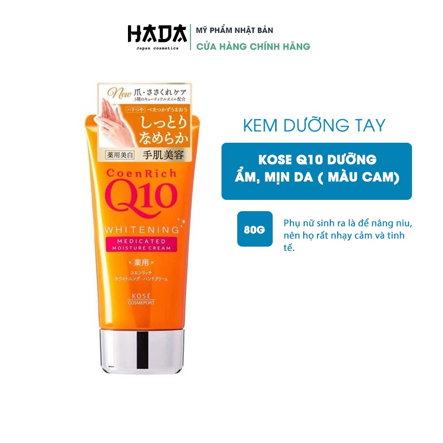 Kem dưỡng da tay Q10 80g của thương hiệu mỹ phẩm Kosé - thương hiệu mỹ phẩm cao cấp của Nhật Bản, do ông Kozaburo Kobayashi thành lập năm 1946. Trong suốt 67 năm hoạt động, Kosé đã cho ra đời hàng loạt các dòng mỹ phẩm cao cấp và được chiết xuất từ thảo dược thiên nhiên đáp ứng mọi nhu cầu làm đẹp của phái đẹp.