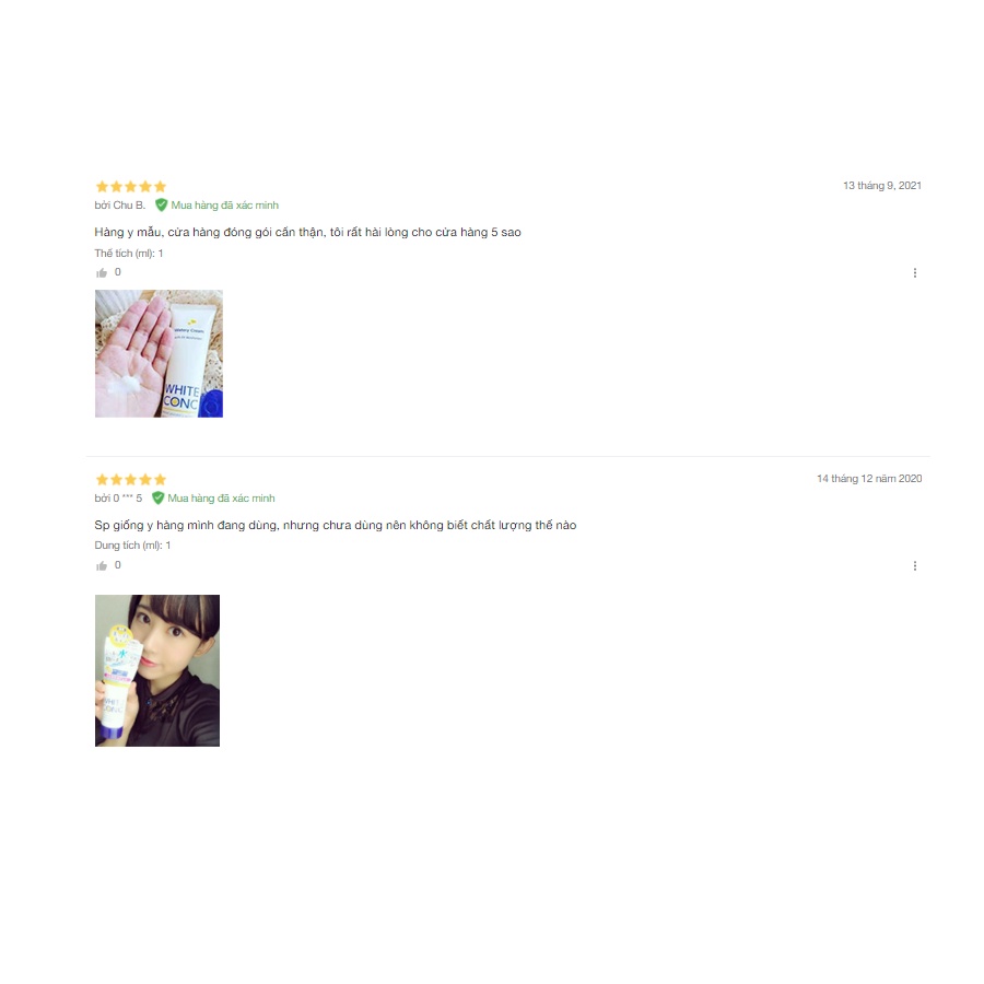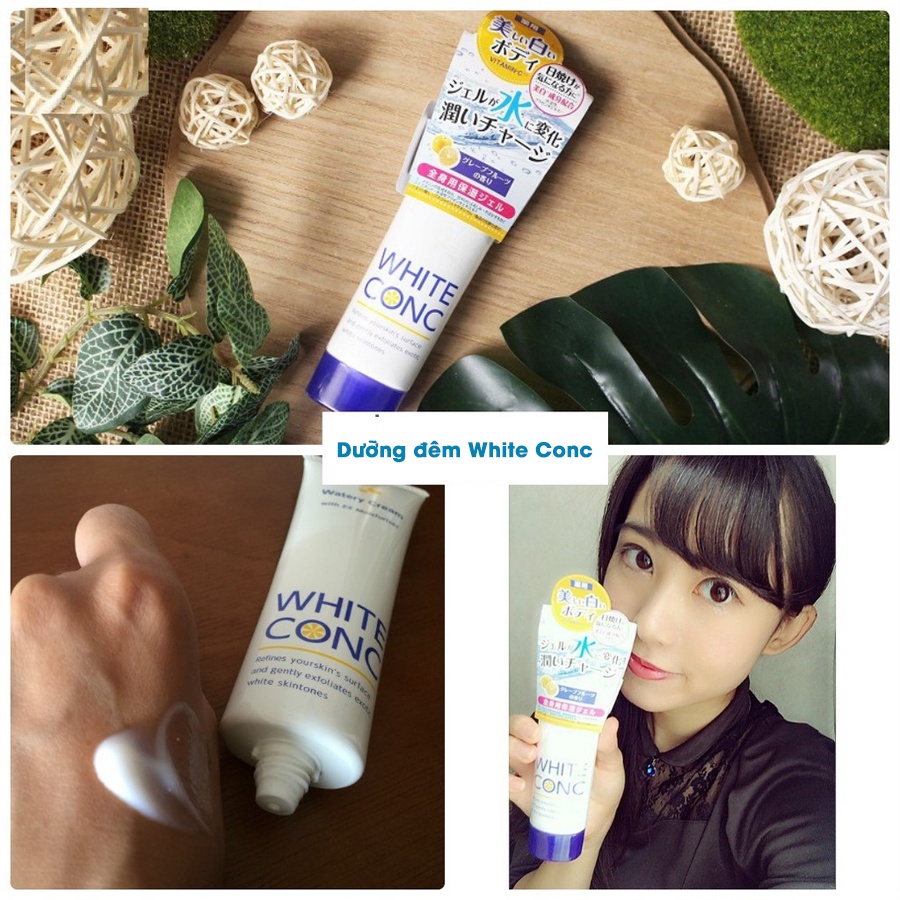 - Cách 2 – dùng như kem ủ trắng da: thoa kem lên vùng da cần làm trắng và ủ trong vòng 5-10p, kết hợp với massage. Sau đó tắm lại với sữa tắm White Conc.