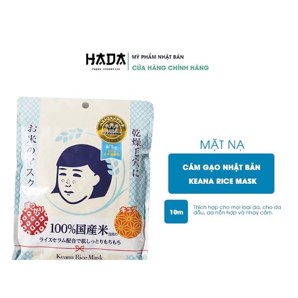 Giới thiệu Mặt nạ cám gạo Nhật Bản Keana Rice Mask (10 miếng, túi 170g)