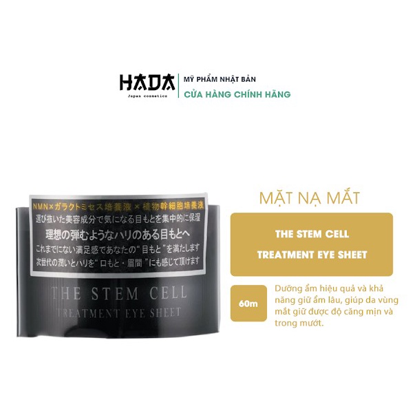 Mặt nạ mắt The Stem Cell chứa NMN, một thành phần mới đang được ưa chuộng trong các thẩm mỹ viện tại Nhật kết hợp với dung dịch nuôi cấy galactomyces, dung dịch nuôi cấy tế bào gốc thực vật, collagen lên men, dẫn xuất vitamin C thẩm thấu nhanh.