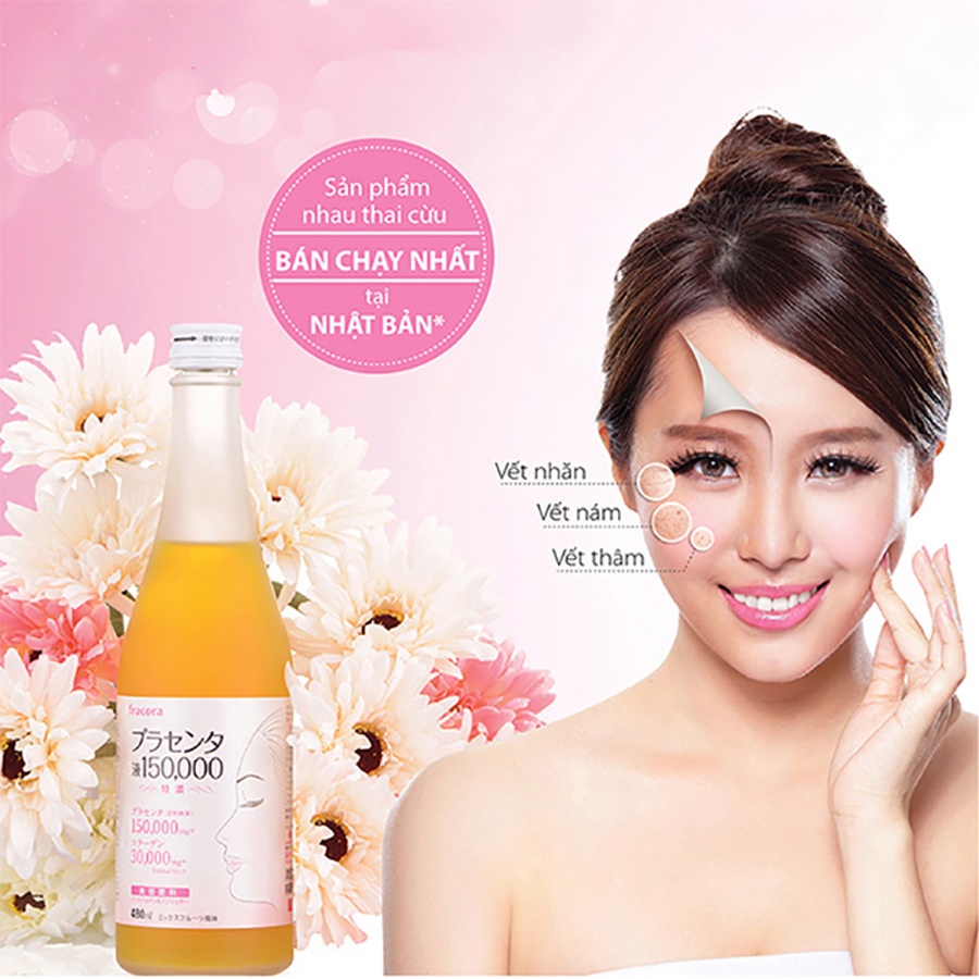 - Nước uống nhau thai cừu Fracora Placenta với 150.000 mg nhau thai cừu, 30.000mgcollagen và nhiều dưỡng chất quý hiếm, nước uống TPCN Fracora Placenta Nhật Bản mang đến 8 công dụng tối ưu cho làn da của bạn.