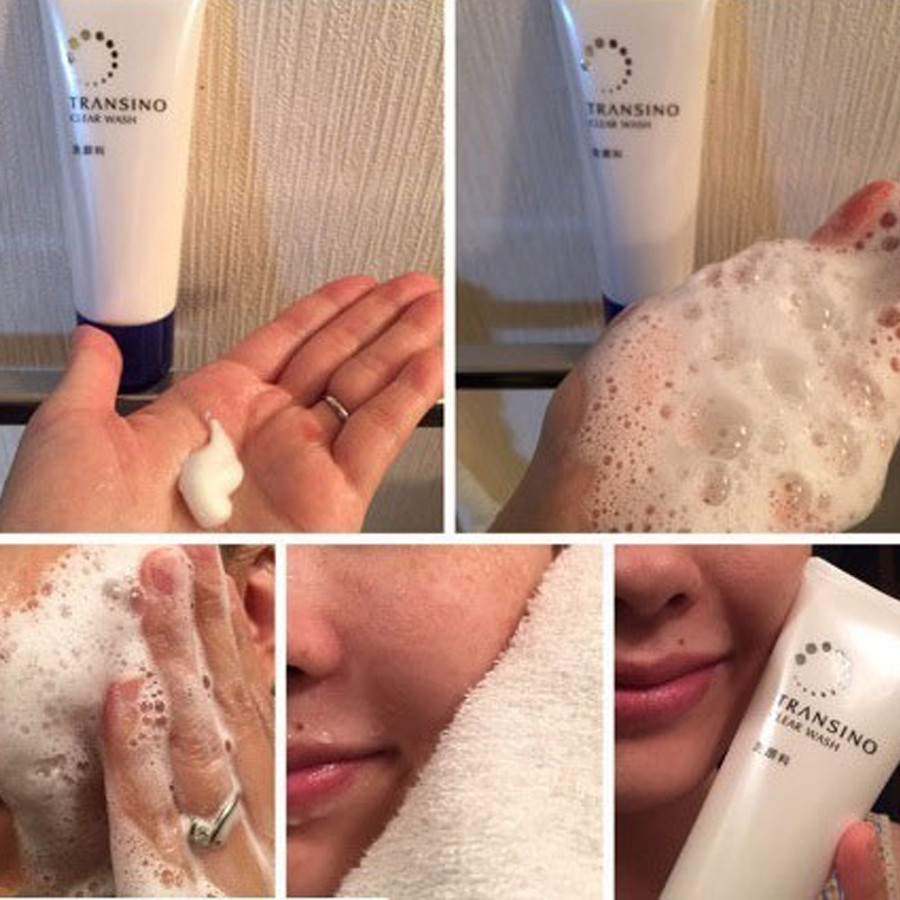 + Bước1: Sau khi tẩy trang, dùng sữa rửa mặt làm trắng da Transino để làm sạch lần nữa toàn bộ khuôn mặt, massage nhẹ dịu trên da, tránh chà xát mạnh vì sẽ khiến làn da nhanh trùng nhão.
