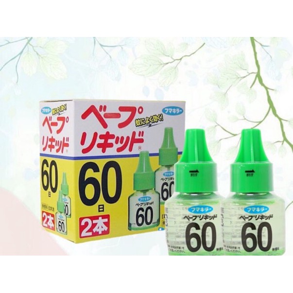 Bộ gồm 02 lọ tinh dầu, dung tích 45ml/lọ, dùng thay thế chuyên dụng cho máy đuổi muỗi Nhật Bản.